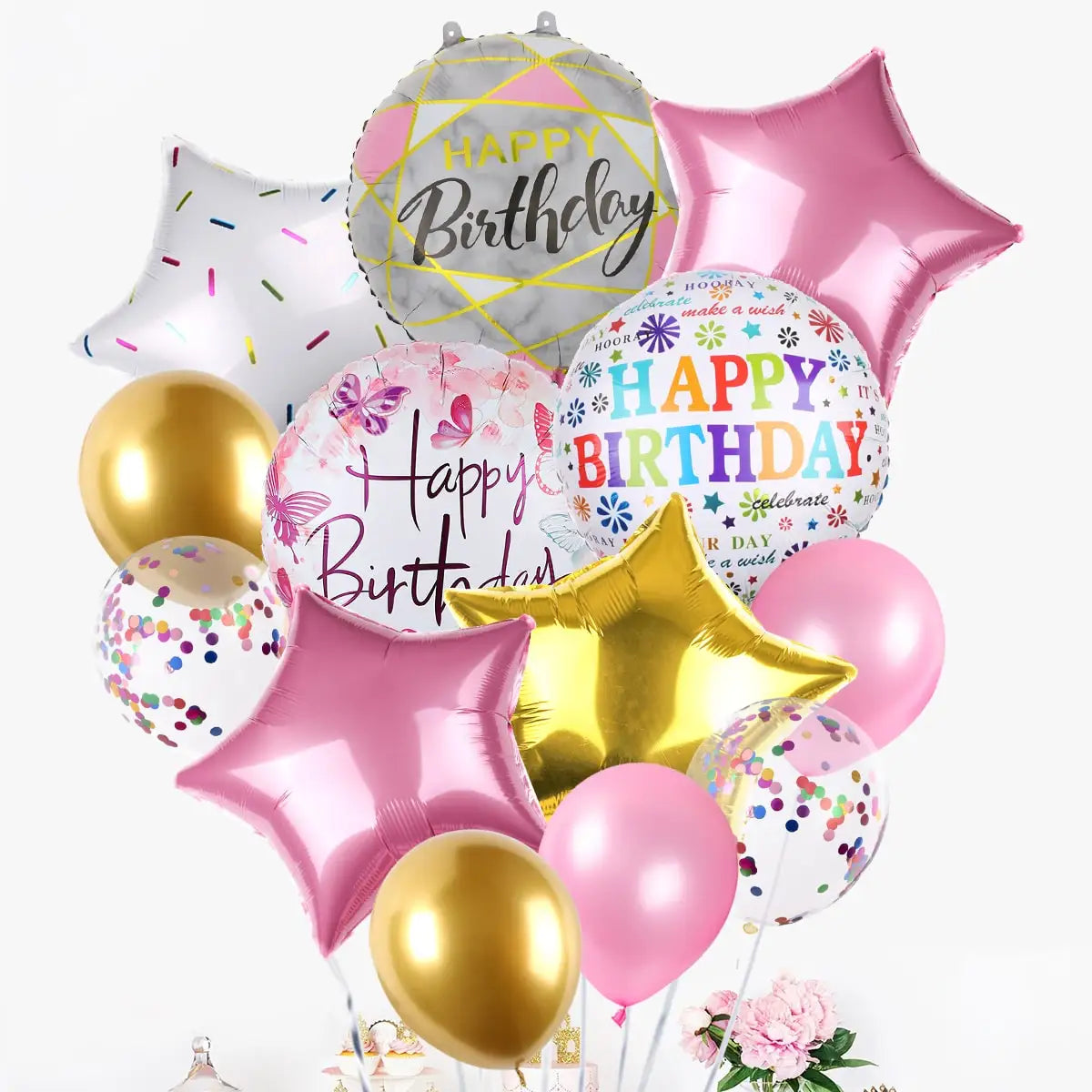 13pcs/1set Happy Birthday Balloons Pink Foil/Latex Balloons Set